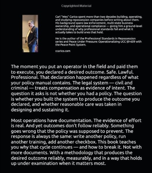 Professional Standards in Repossession – Volume II: Standards Lifecycle by Carl “Wes” Carico is now available.