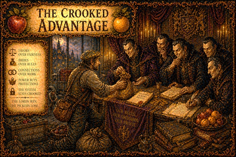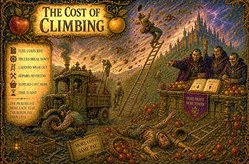 The honest Pickers were left with sparse branches, broken ladders, and long drives between poor yields. While others prospered, they struggled simply to survive.