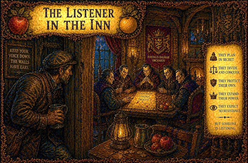 Twice each month, under dim lantern light, the Farm Lords gathered in a grand inn at the heart of Fortalis-Dalmar. No Picker was permitted beyond its doors.
