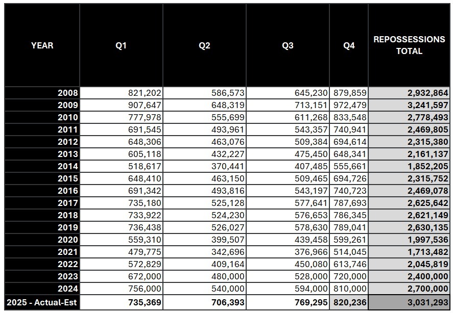2008 -2024 Repossession Volume – 17 Years of Crisis and Comeback